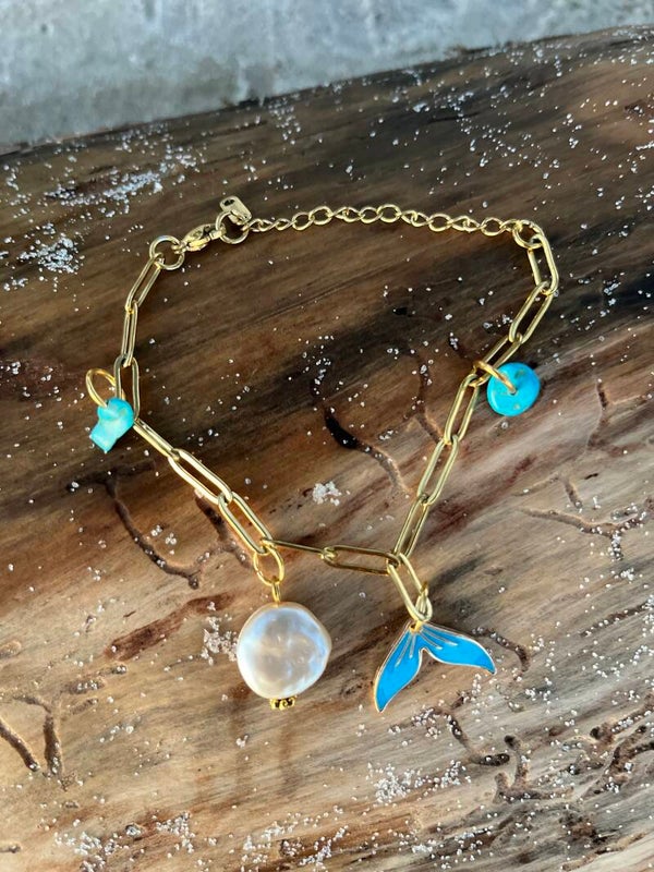 18k gold paperclip chain, 6.5 inch charm bracelet with lobster clasp, various charms and letters to choose from
