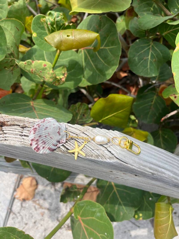 Grey & pink seashell bag charm
