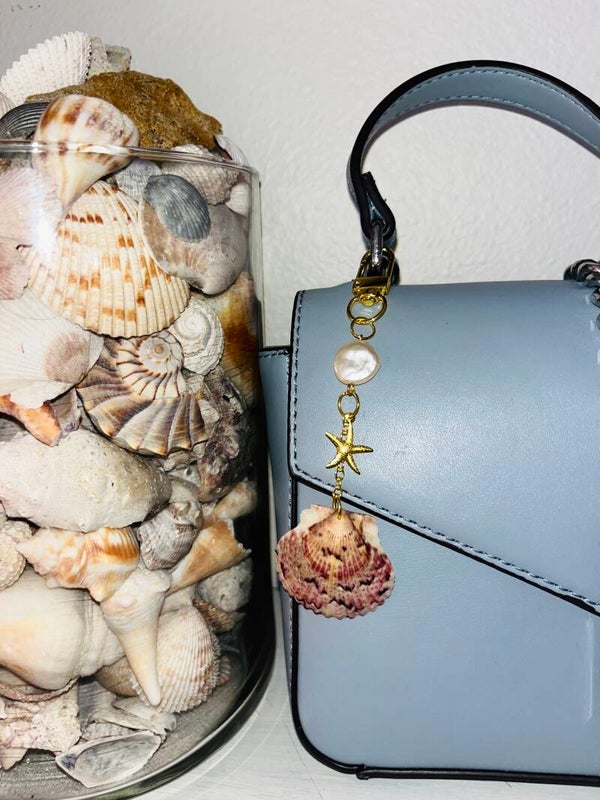 Grey, Pink & White seashell bag charm