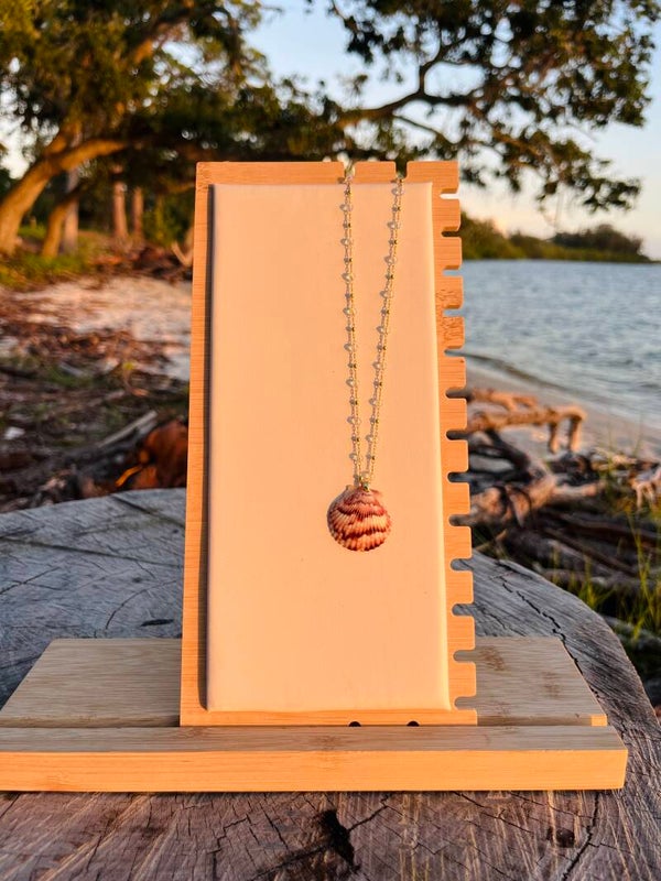 18in crystal rosary bead chain with brass gold beads for chain.