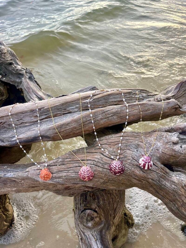 Dark pink & white scallop necklace